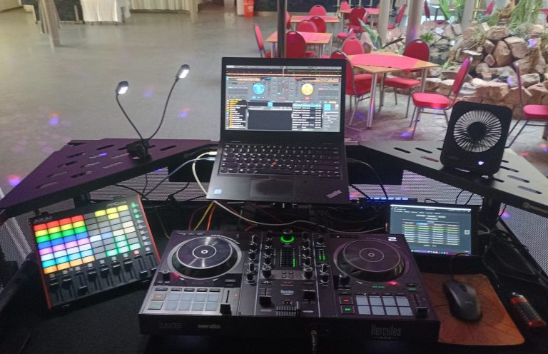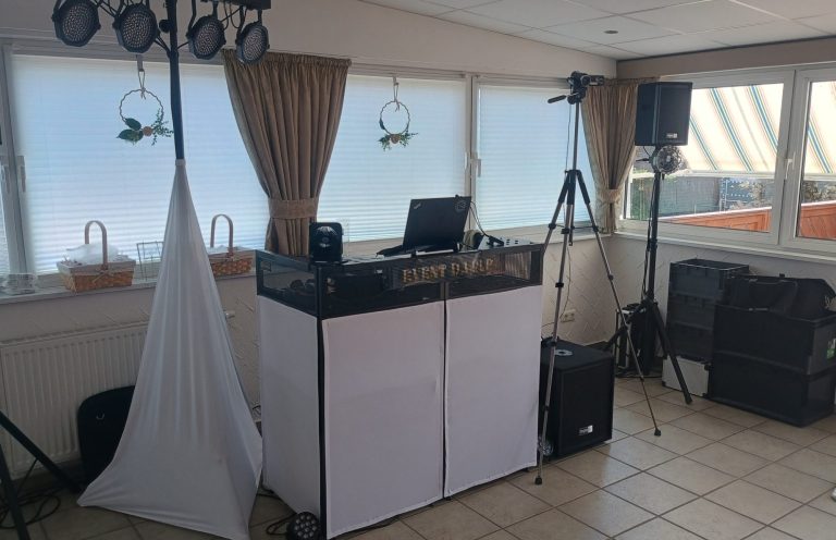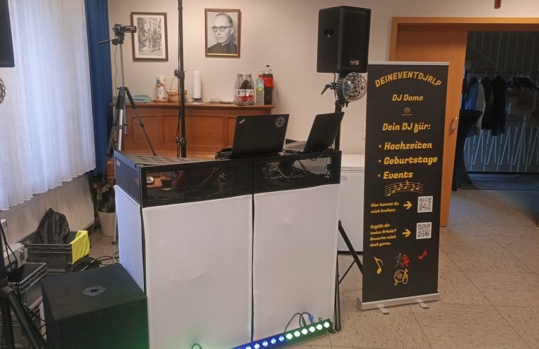Ein stabiler DJ-Tisch ist essenziell, um die Technik ordentlich und sicher aufzustellen. Hier finden der Laptop, der DJ-Controller sowie diverse Kabel ihren Platz. Um das visuelle Erlebnis zu bereichern, setze ich zwei Movingheads ein, die mit ihren beweglichen Lichtern Stimmung und Dynamik ins Spiel bringen. Ergänzt wird das Lichtkonzept durch zwei Multieffekt Lightbars, die für stimmungsvolle Lichteffekte sorgen und die Abende unvergesslich machen. Je nach Platz und Zeit können noch weitere Effekte zum Einsatz kommen. Lasst Euch da einfach Überraschen.