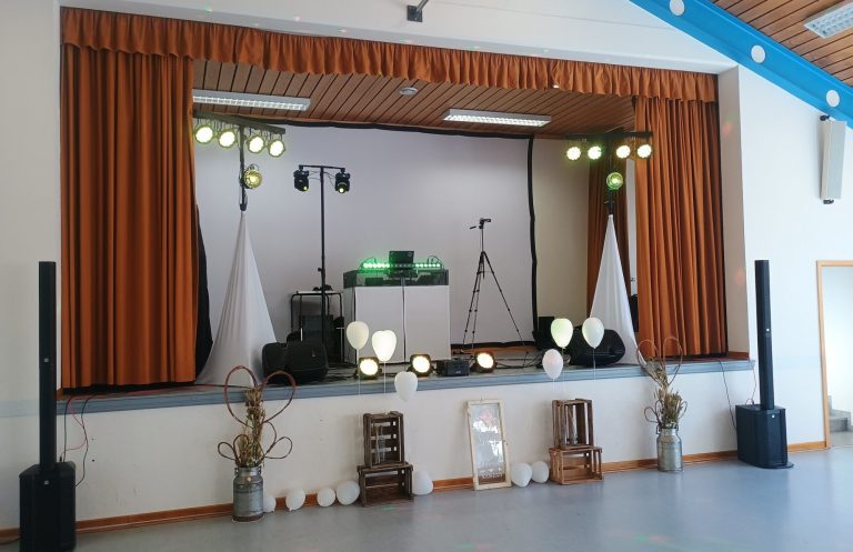 Für besondere Momente, wie den ersten Tanz des Brautpaares, ist eine optionale Nebelmaschine eine hervorragende Ergänzung. Sie schafft eine magische Atmosphäre und lässt die Lichter der Movingheads eindrucksvoll zur Geltung kommen. Mit dieser durchdachten Technik steht einer grandiosen Feier nichts im Wege, und wir garantieren, dass jeder Gast die Hochzeit in vollen Zügen genießen kann.